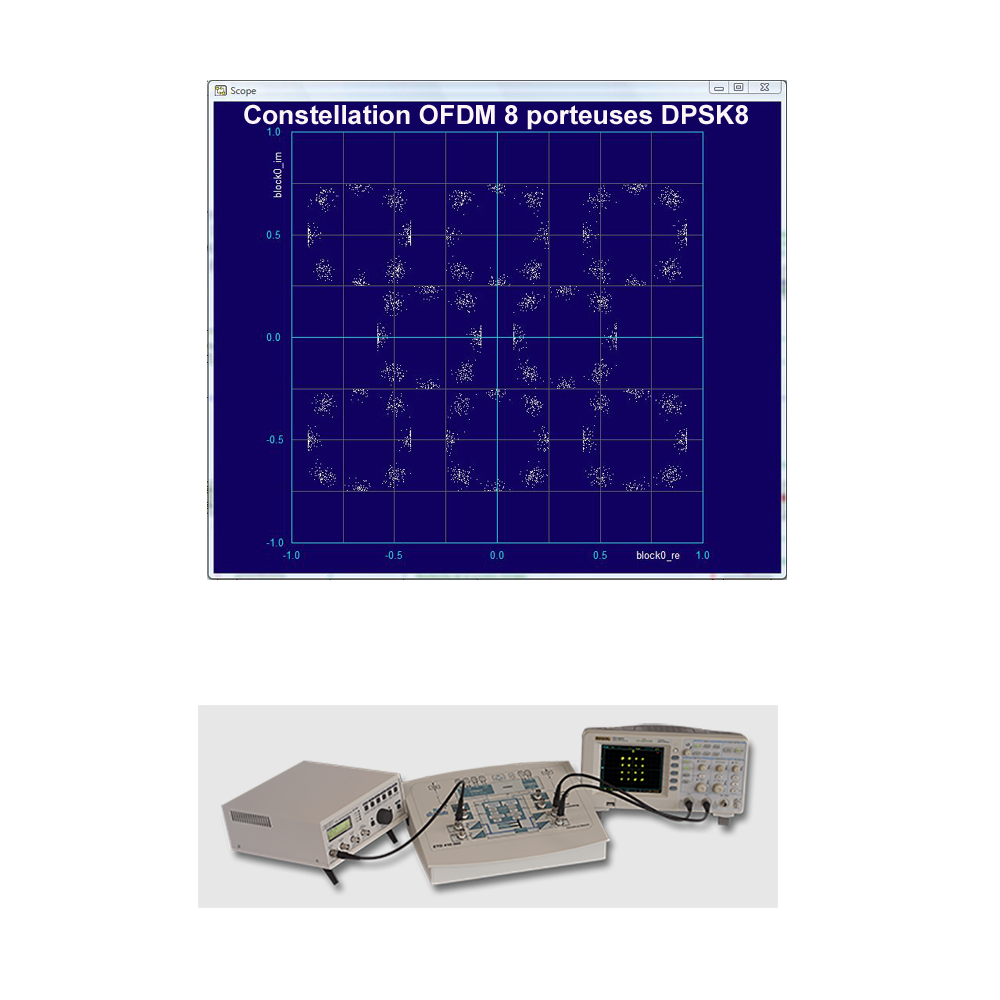 - Oscilloscope virtuel 8 canaux, mode XY, constellation, FFT...